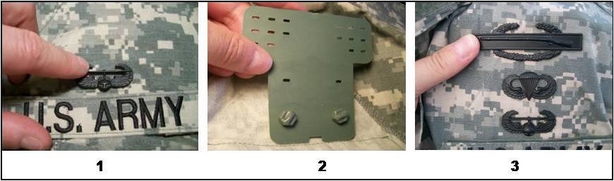 1. With US Army tape already attached pin first badge in place